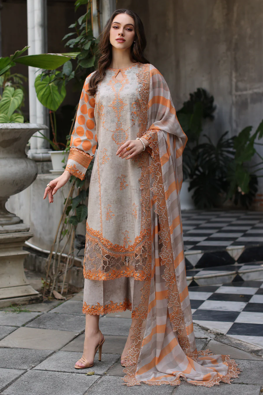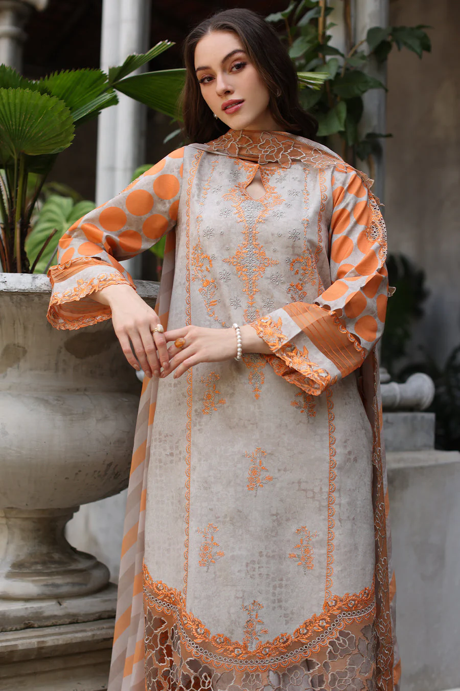 The Charizma CMR5-02 Lawn is a masterpiece designed to make you feel like a queen on your special day. Crafted with exquisite attention to detail, this ensemble is a perfect blend of elegance, comfort, and style.