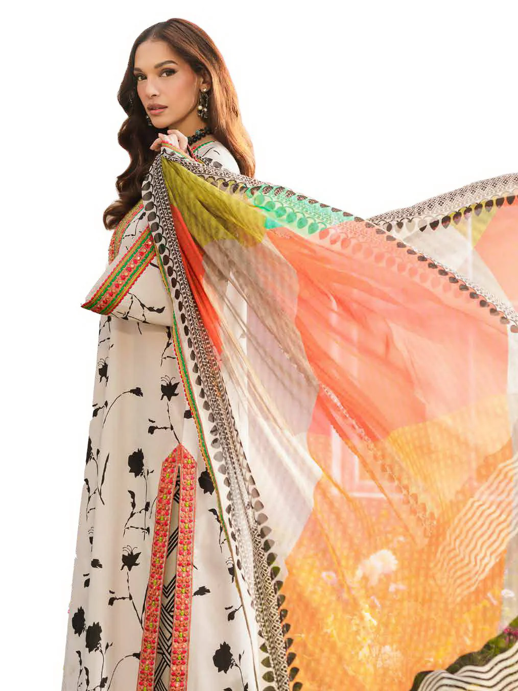 - Printed & Embroidered Chiffon Dupatta