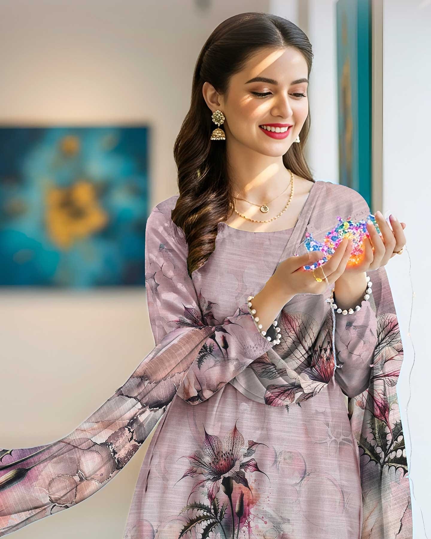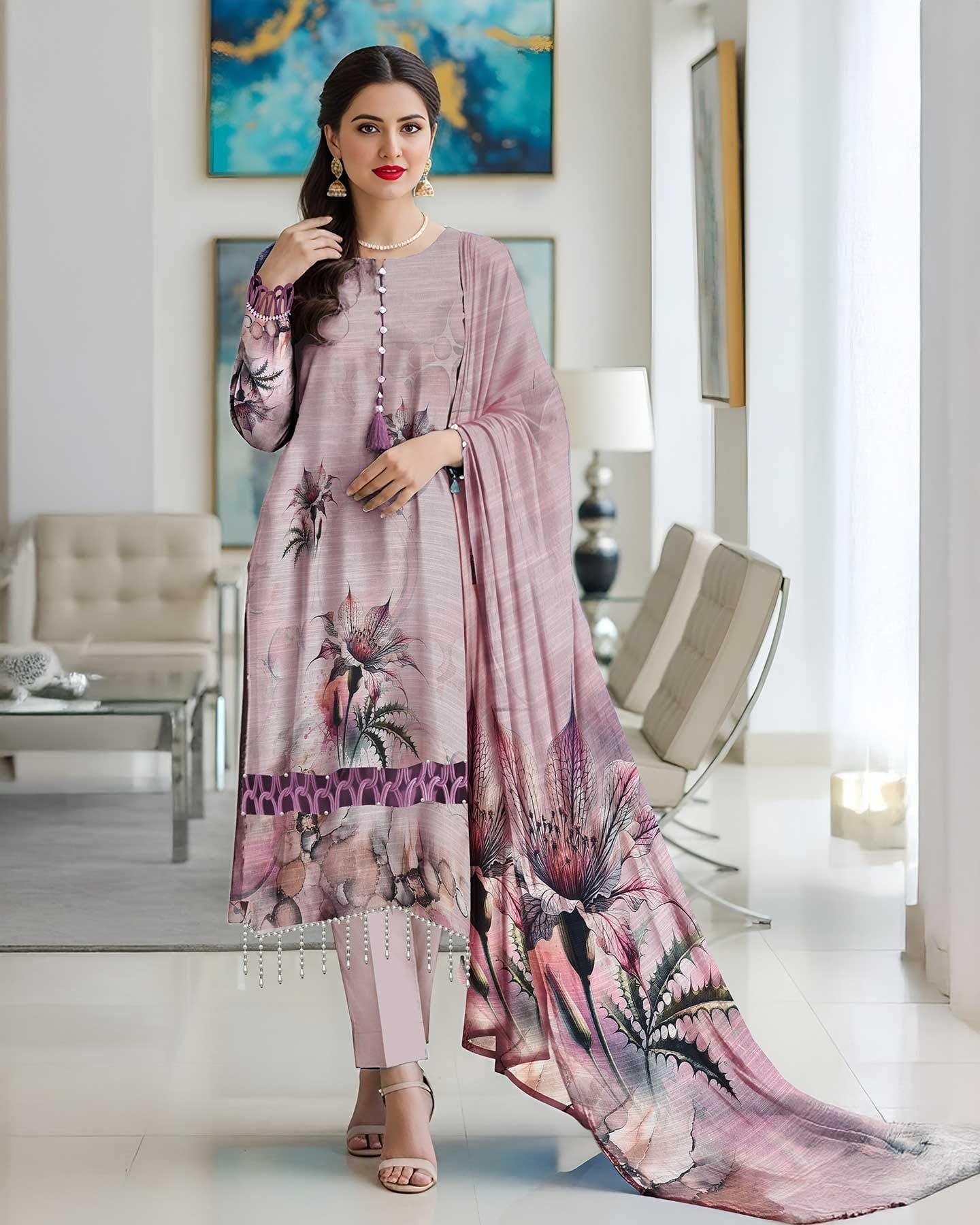 • LUXURY DIGITAL PRINT STAPEL SLUB KARANDI DUPATTA