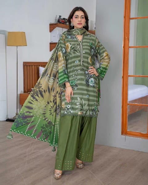 • Luxury Digital Printed Staple Stripe Dupatta