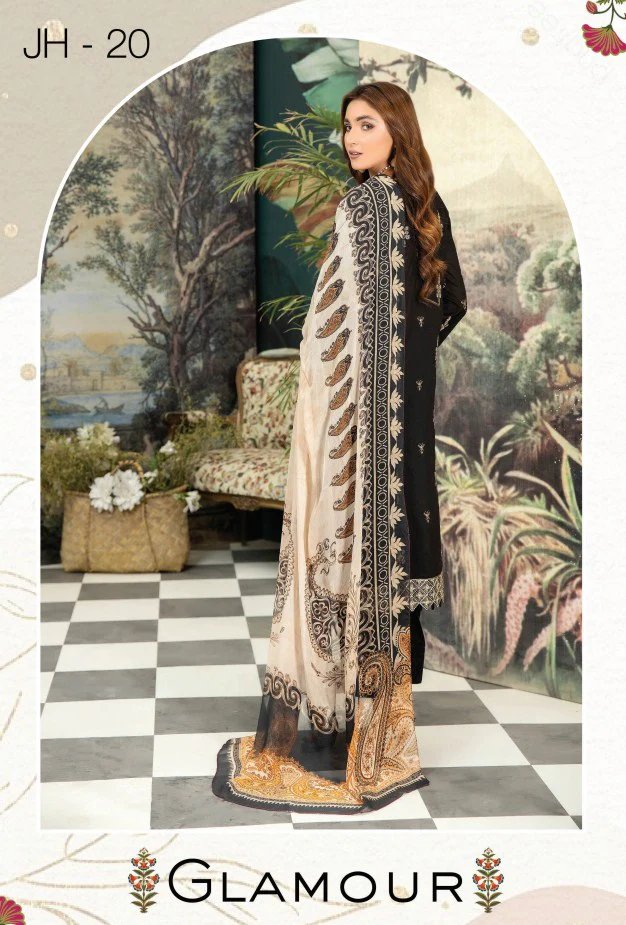 Embroidered Lawn Shirt Front,Back & Silleves Digital Printed Chiffon Dupatta Dyed Trouser