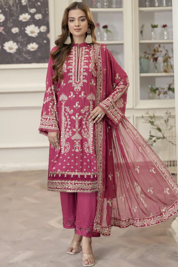 Embroidered Viscose With Embroidered Chiffon Dupatta
