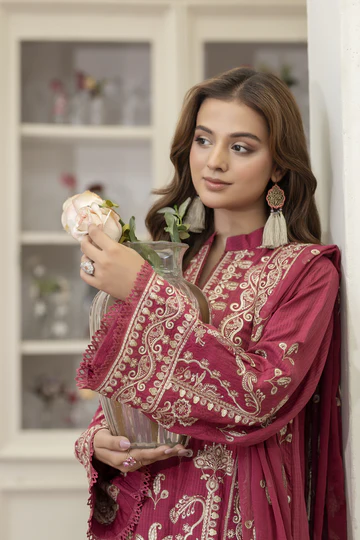 Description: Embroidered Viscose With Embroidered Chiffon Dupatta