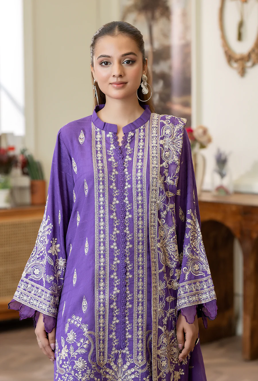 Description: Embroidered Viscose Dobby With Embroidered Chiffon Dupatta