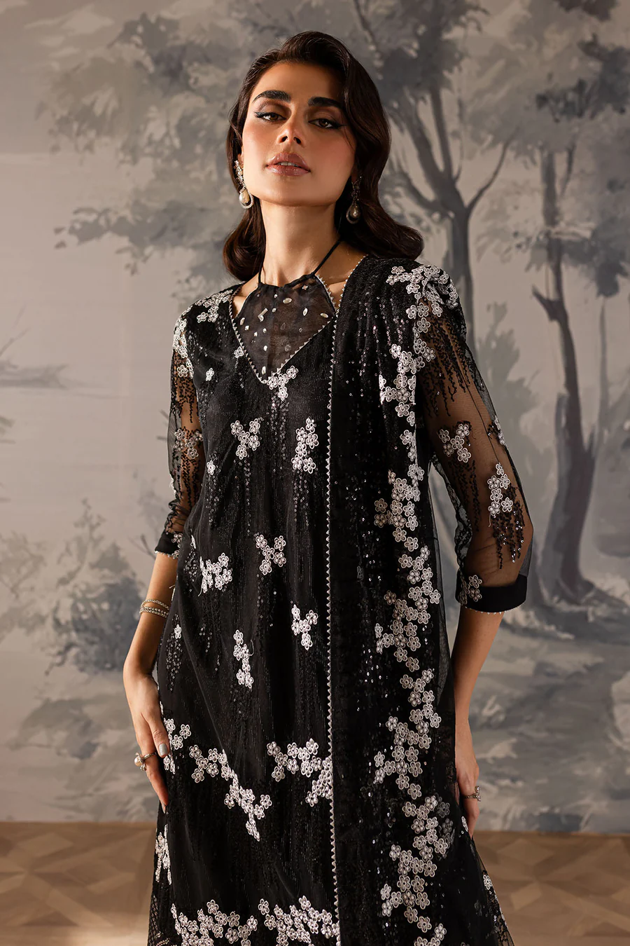 • Embroidered Net Lower Panel