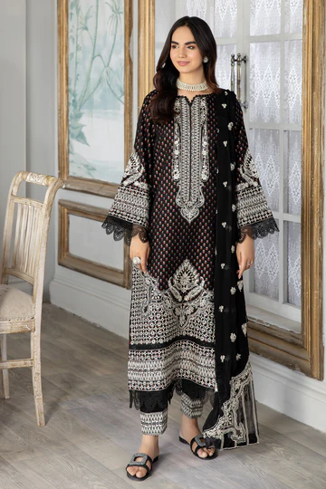 Stuff : Embroidered Banarsi Jacquard Lawn With Embroidered Chiffon Dupatta.