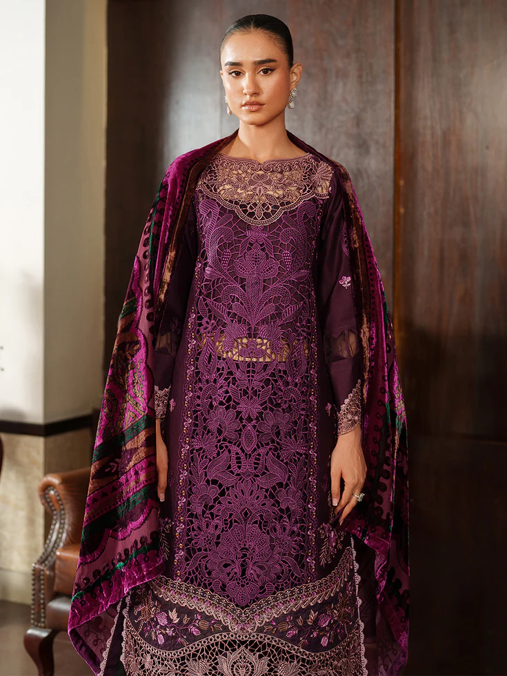 Embroidered Corduroy Cutwork Dyed Palachi Shawl