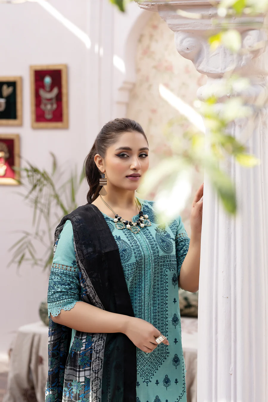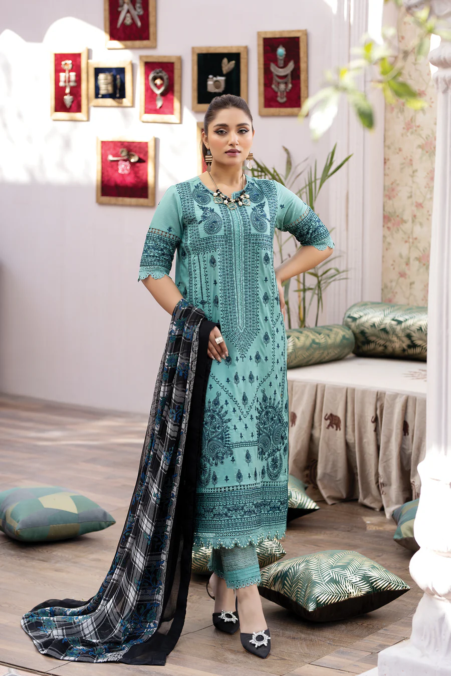 Stuff: Embroidered Lawn With Digital Printed Chiffon Dupatta.