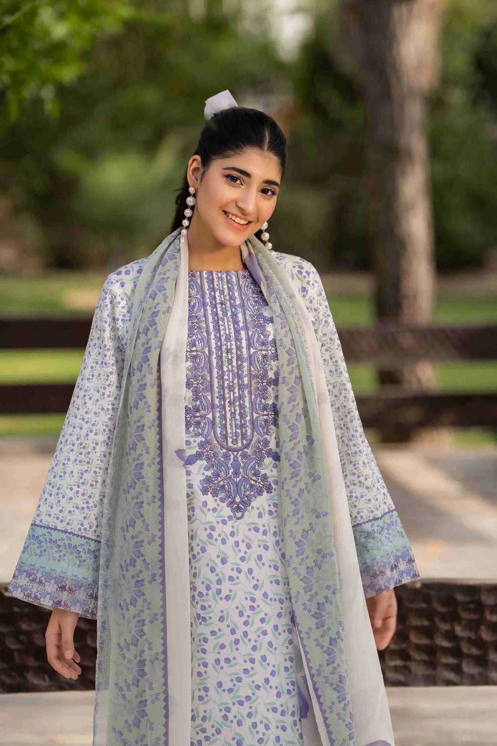 • Printed Lawn with Embroidered Neckline Shirt 3 Meters